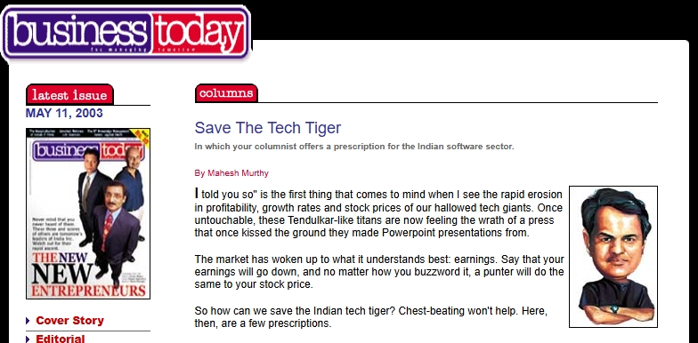 I told you so'' is the first thing that comes to mind when I see the rapid erosion in profitability, growth rates and stock prices of our hallowed tech giants. Once untouchable, these Tendulkar-like titans are now feeling the wrath of a press that once kissed the ground they made Powerpoint presentations from.